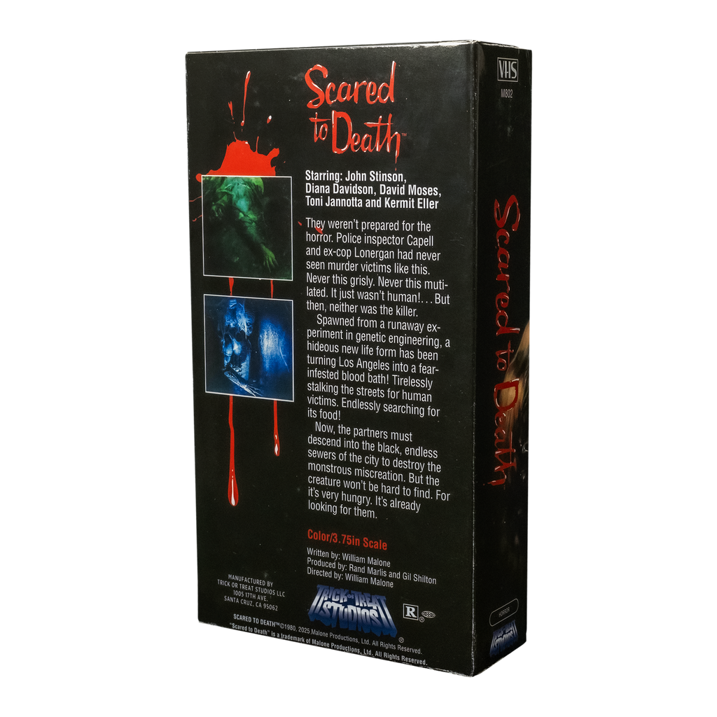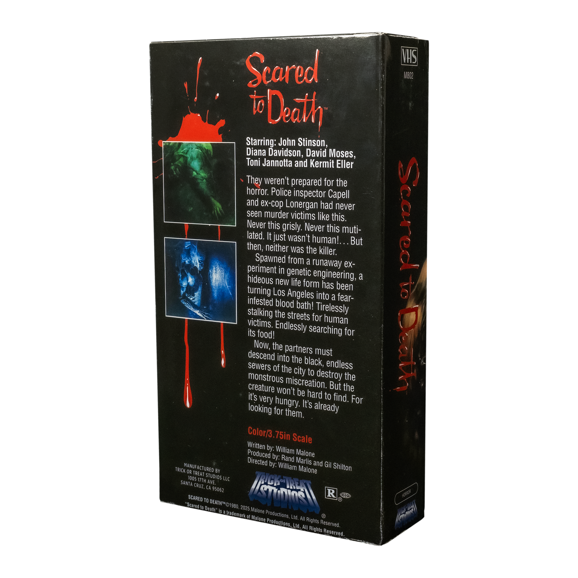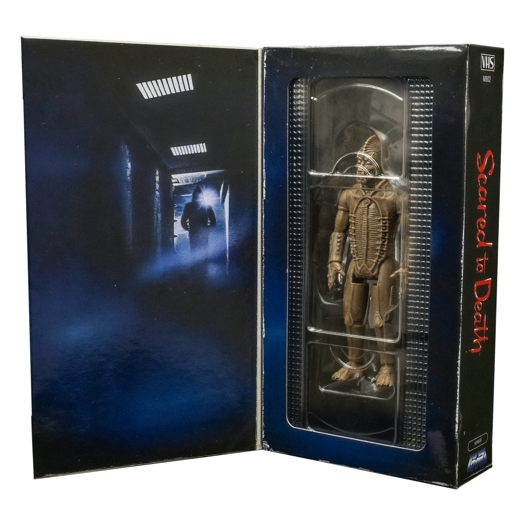 This retro-style collectible comes packaged in a VHS-inspired collector’s box with a magnetic flip front, complete with a cassette-shaped blister tray for that authentic rental store throwback feel. A must-have for fans of deep-cut horror and retro collectibles!