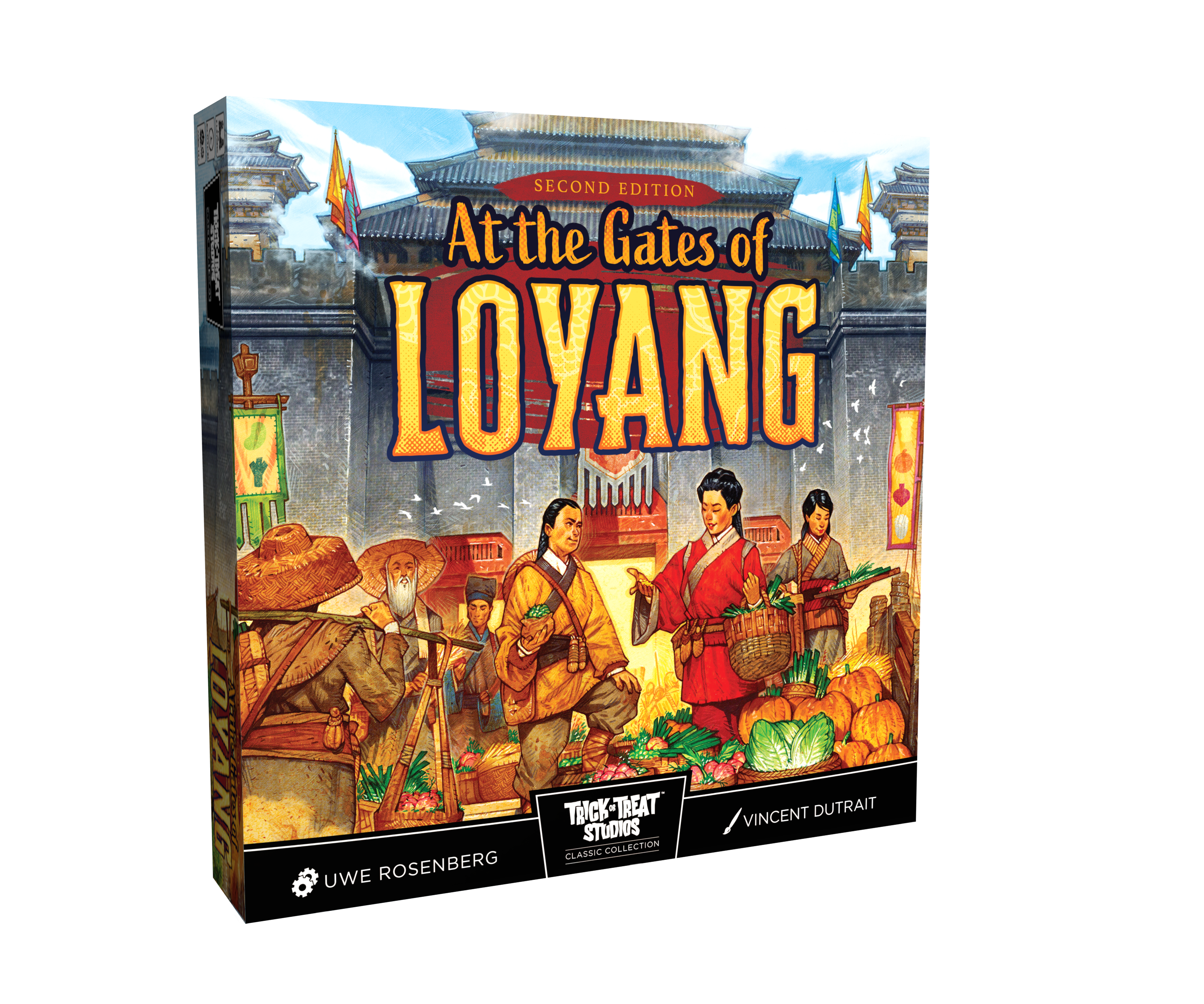 China, 2000 years ago. Loyang (Luòyáng / 洛阳) capital of the Han Dynasty, flourishes as one of the great centers of ancient civilization. The growing city hungers for fresh food, and local farmers rise to the challenge – cultivating wheat, pumpkins, turnips, cabbages, beans, and leeks in the fertile fields surrounding the city walls. After each harvest, they gather at the gates of Loyang to sell, trade, and expand their farms, vying to become the most prosperous farmer. The second edition includes an all new cooperative mode by Ralph Bruhn and ode. In the cooperative mode you are asked to provide the City Festival with vegetables, and to fulfill special requests for certain customers. You are confident you can deliver vegetables, serve customers, collect donations… and still assure your own prosperity. But can you keep your promises? Work together as a team to try to manage all the appointed tasks.