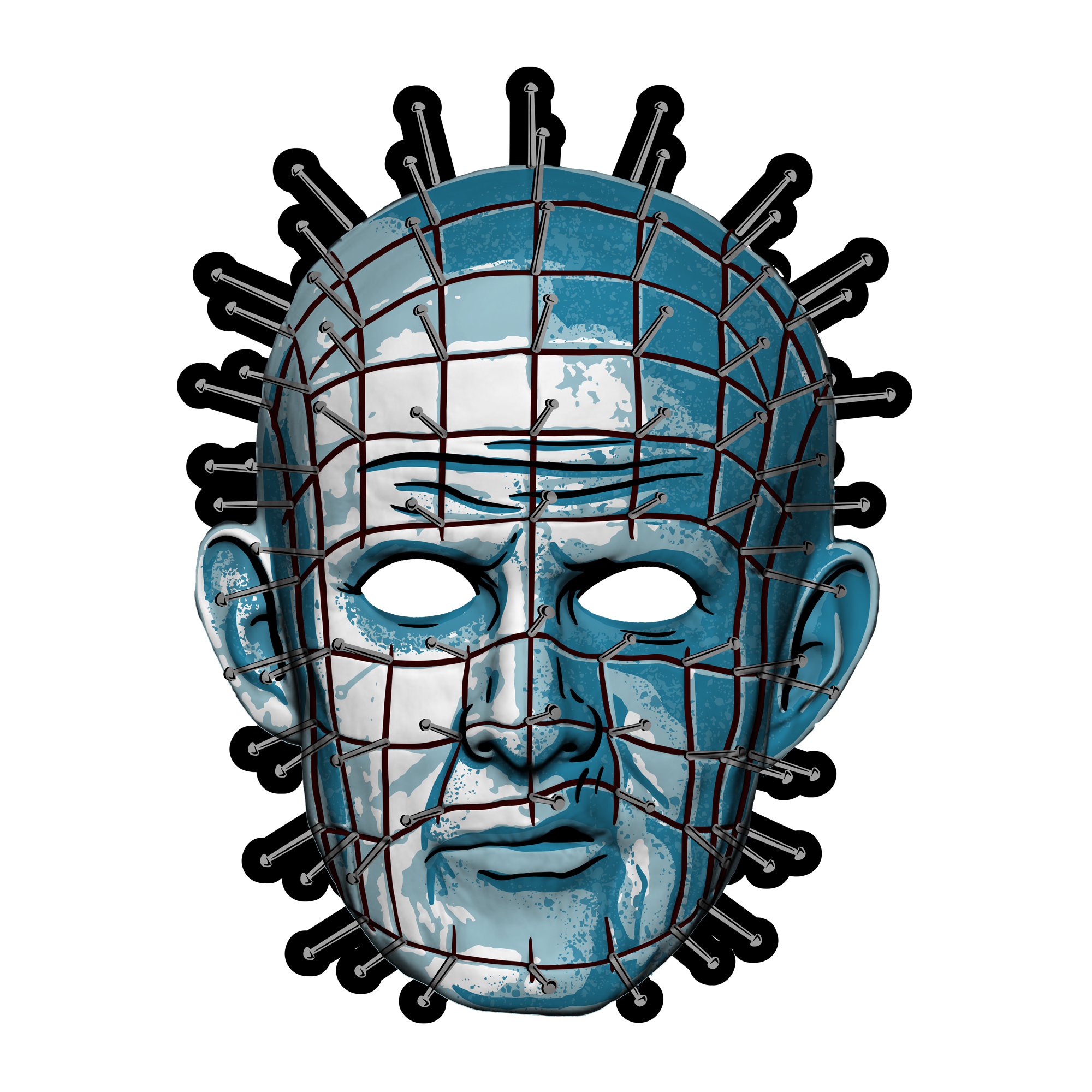 This lightweight vacuform mask showcases a screen-printed illustrated design with bold colors and stylized details that capture Pinhead’s unmistakable look in retro fashion.