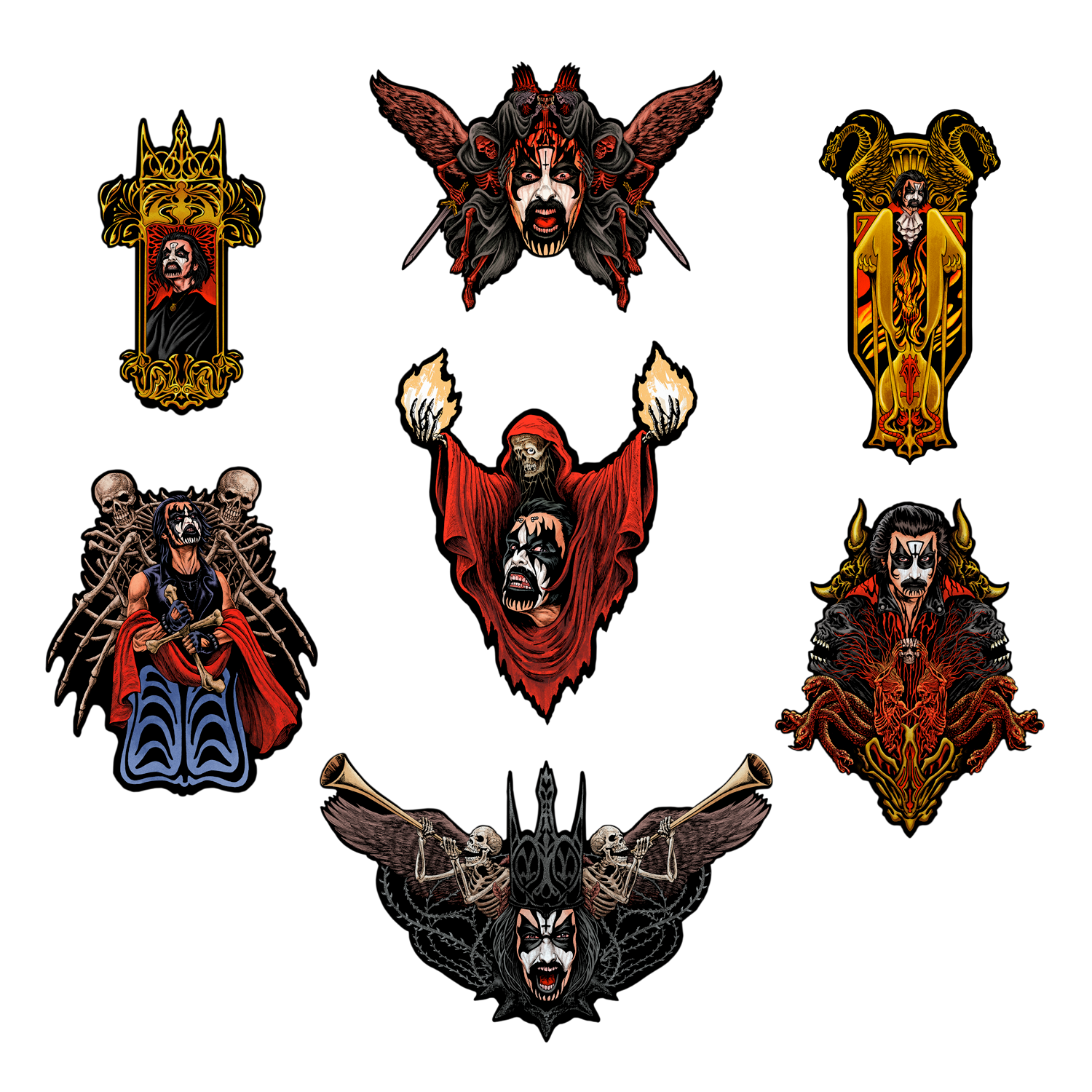 Trick or Treat Studios is proud to present the officially licensed, King Diamond - Wall Decor - Series 1. This amazing collection of wall decor comes with seven full color wall decor designs. Each piece in this collection was designed and drawn in a vintage style, similar to the classic Halloween wall decor from the early 60's. Printed on thick 300 gsm, coated paper, perfect to reuse for many Halloween parties to come.