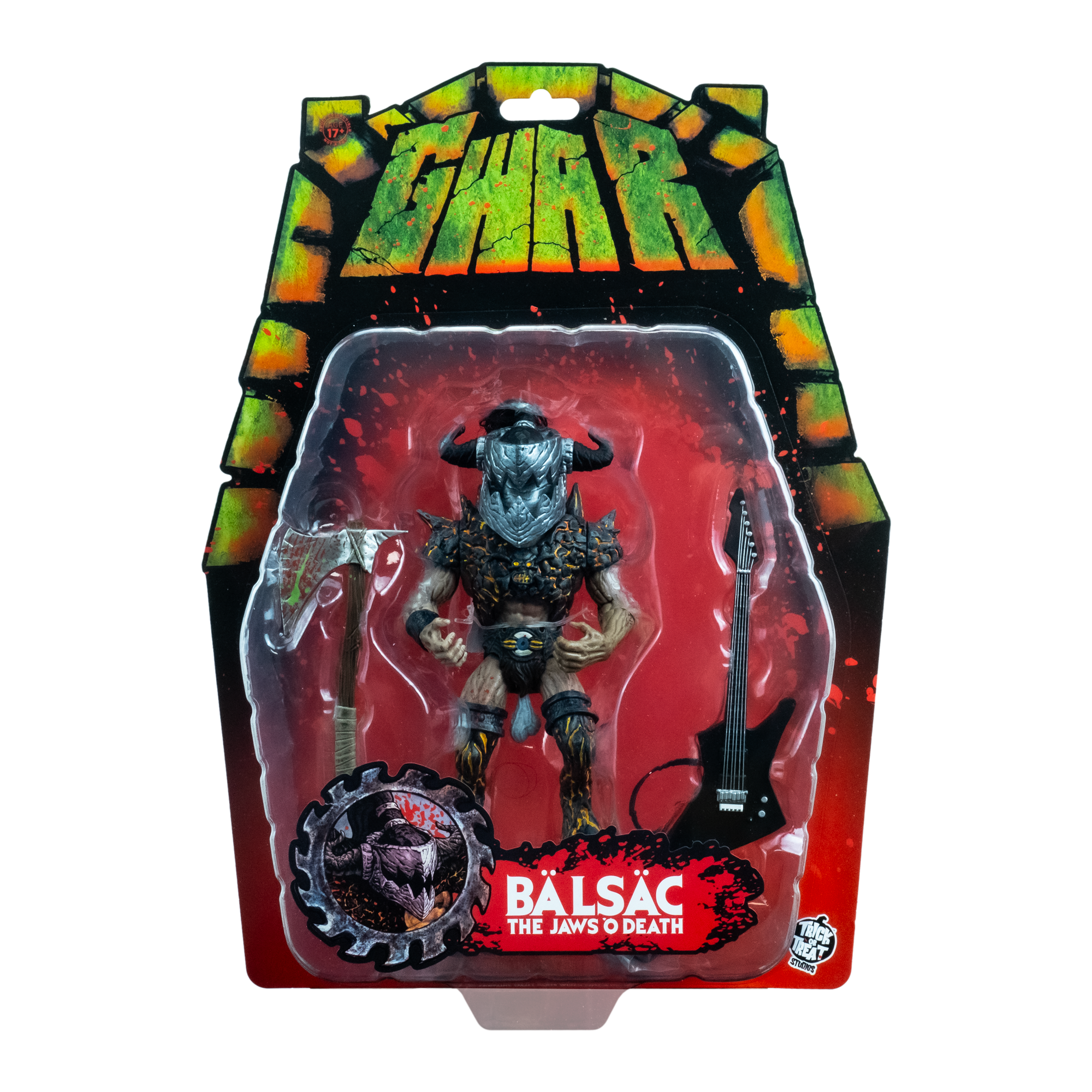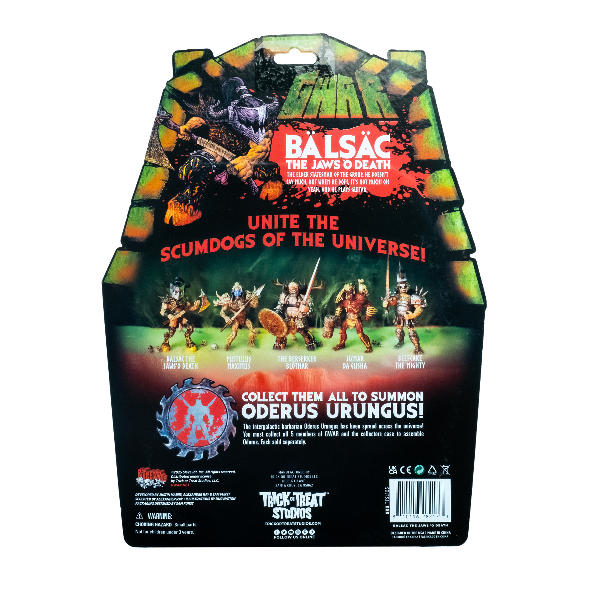 Trick or Treat Studios is proud to present the officially licensed GWAR - Balsac the Jaws 'O Death 5" Action Figure. Standing roughly 5 inches tall, this highly detailed figure is a must for any GWAR fan. Packaged in retro style action figure packaging just like your favorite figures from the toy aisle. Backing card features art by Dug Nation.
