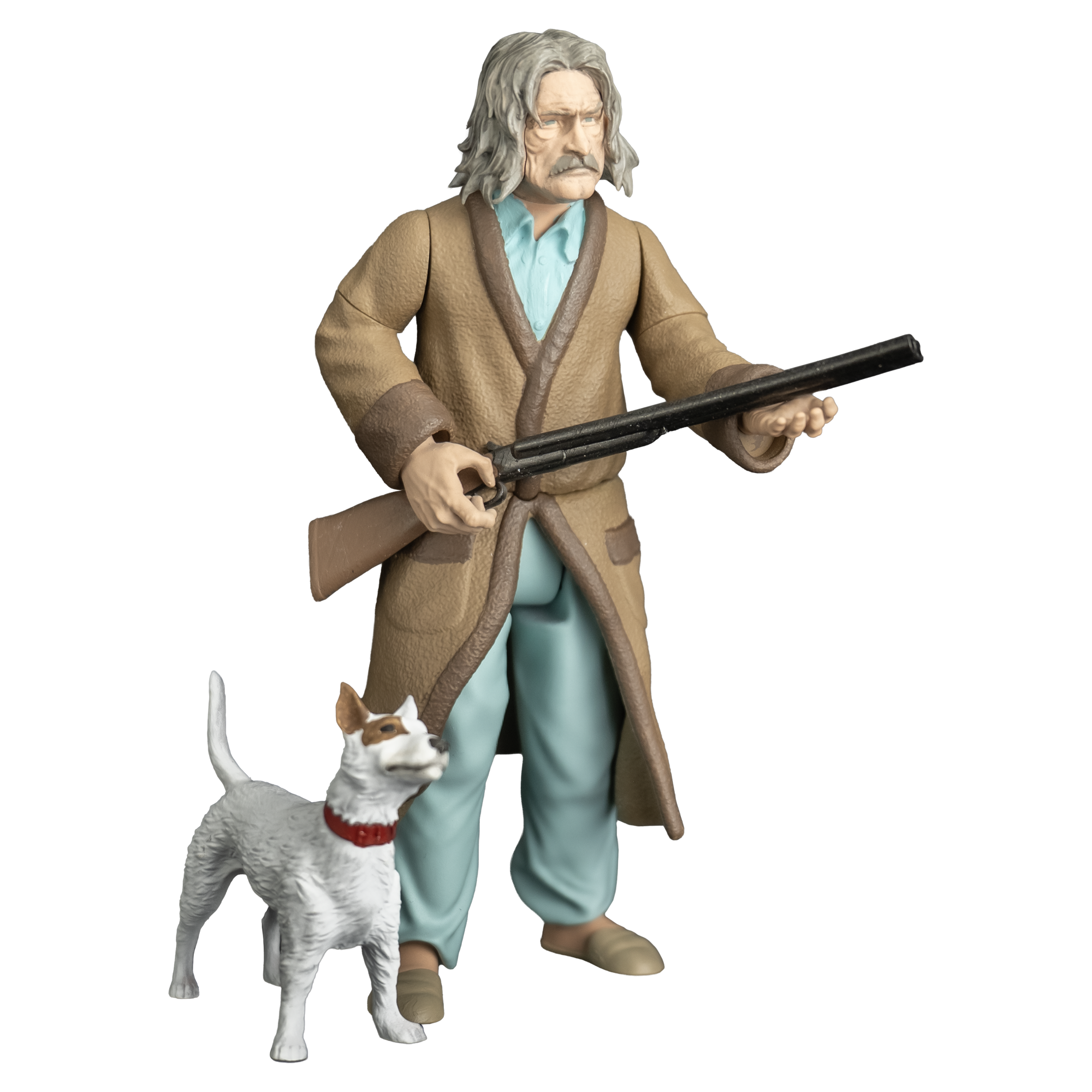 Accessories include his shotgun, his scruffy dog Spite, and a pumpkin, pulling directly from the climactic showdown of the film.