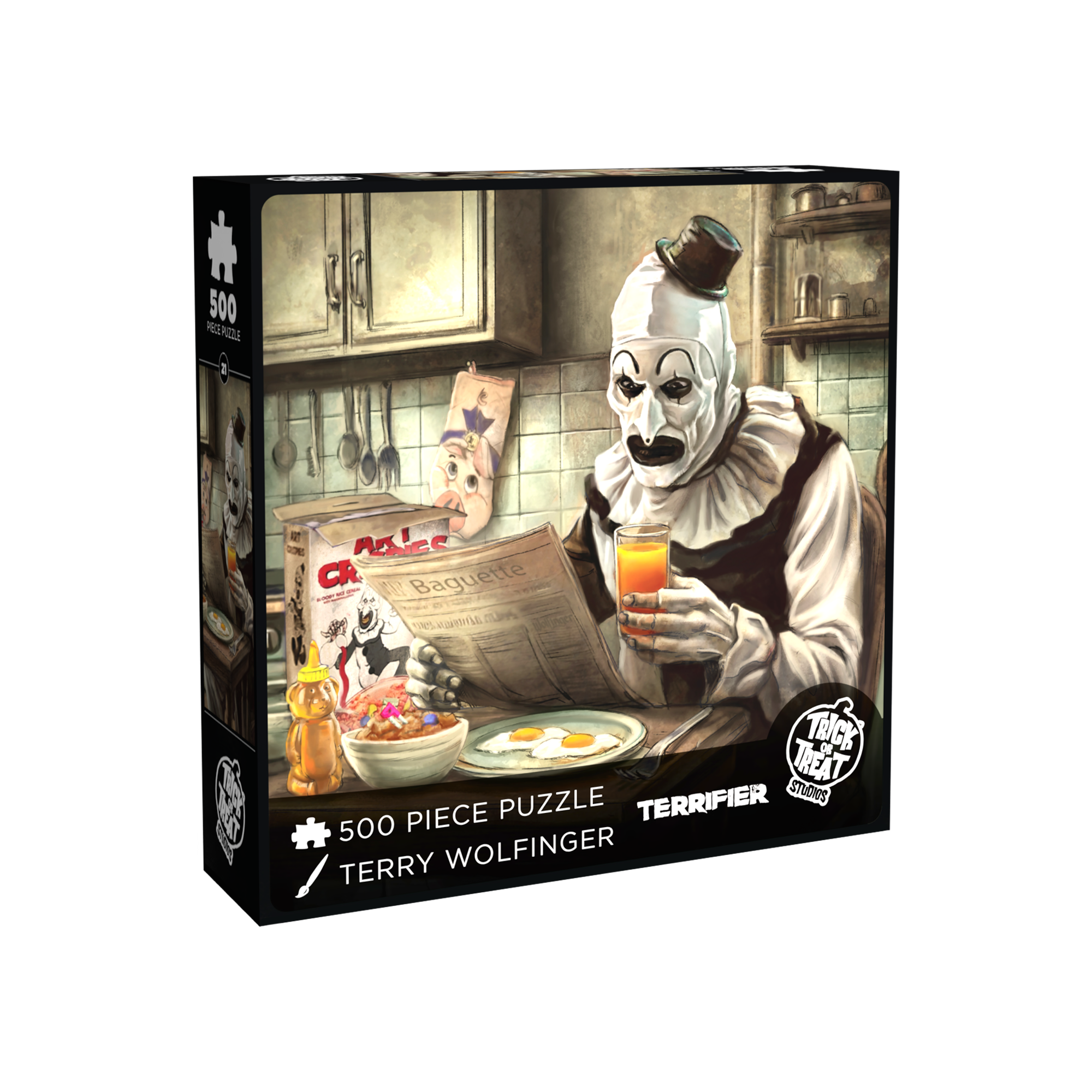 Bring home the mayhem with this 500-piece Terrifier Art Krispies jigsaw puzzle, illustrated by master artist Terry Wolfinger! Featuring the nightmarish Art the Clown—because who doesn’t want to spend a cozy evening piecing together pure terror?