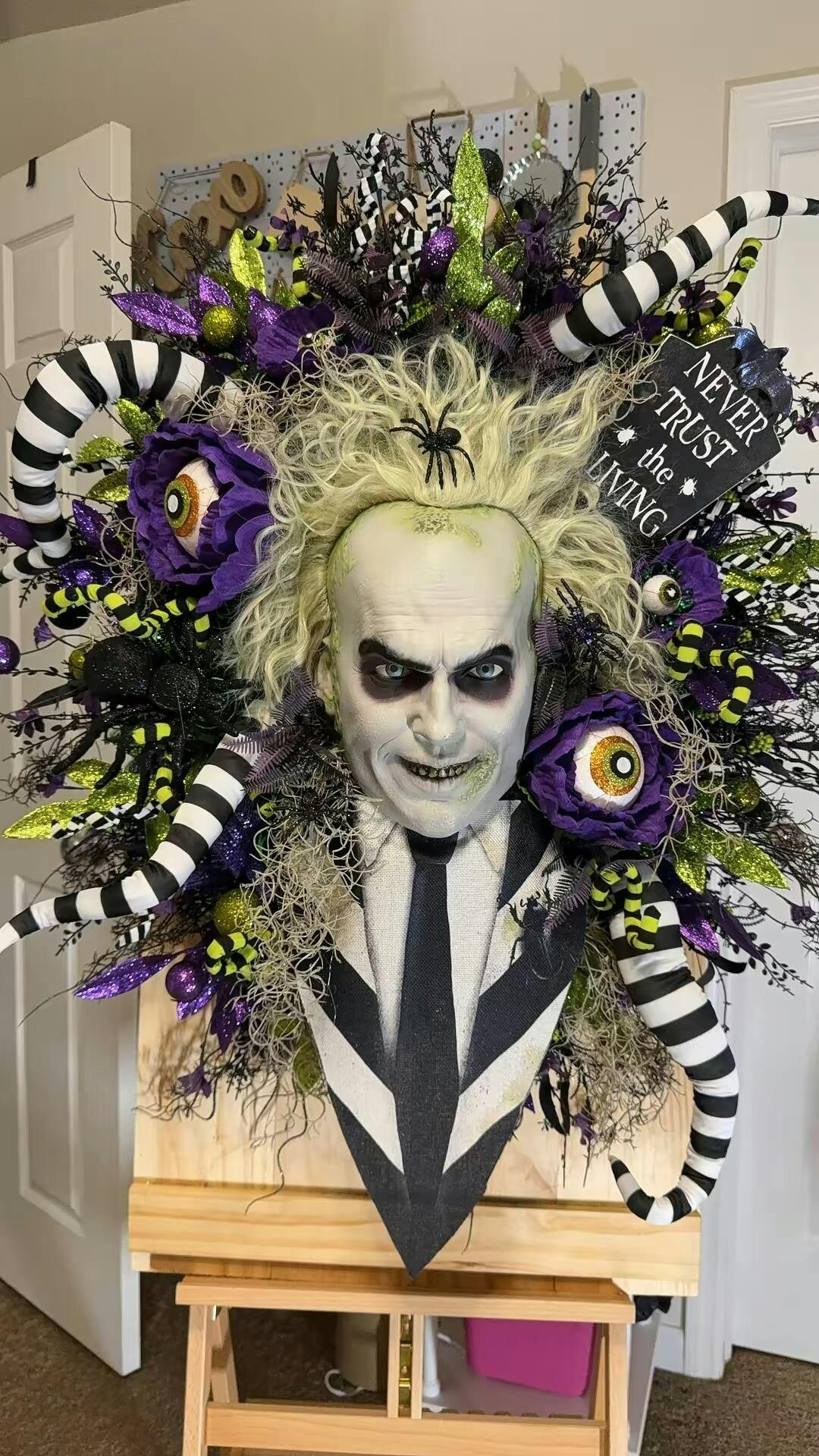 Trick or Treat Studios is proud to present the officially licensed Beetlejuice - Beetlejuice Deluxe Injection Mask. This deluxe face mask is made of rigid plastic sculpted and painted to look exactly like Beetlejuice! The mask has an elastic strap to comfortably hold it in place with a styled wig attached to the mask for full coverage and easy wear.