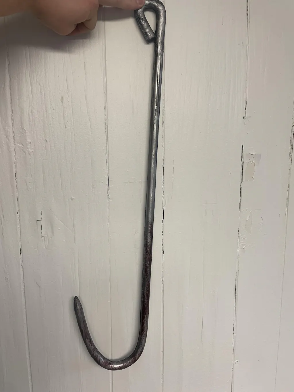 Trick or Treat Studios is proud to present the officially licensed, Texas Chainsaw Massacre (1974) - Meat Hook Prop. Based on multiple screen caps and backstage photos, this Meat Hook Prop is a perfect replica of the hook that Leatherface hung Pam on while chainsawing Allen. Painted as rusted steel with blood covering the tip, you will swear this meat hook was the real thing. Get yourself this Meat Hook Prop and decorate your home haunt this Halloween.